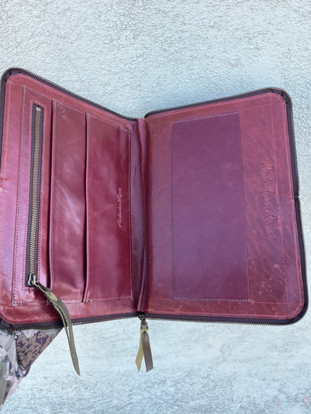 Our Bible Cover  measures 18" x 12.5" when laid out flat/open and 9" x 12.5" when zipped up. It has the capacity to be up to 2" thick. This will also fit a MacBook Air.
